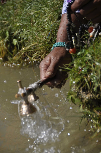 一问之下才知道他们用里面装的是做擦擦的模子,当地人认为在水中敲打可以让河水都与佛法有缘。具体何等解释,因为语言交流问题,我也不是特别清楚。