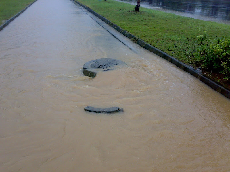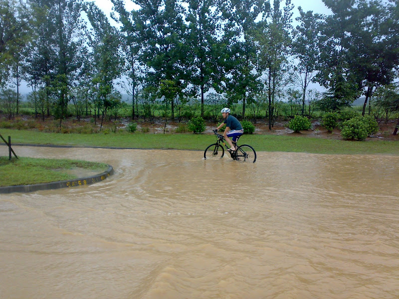 路上的水大的有些壮观,骄阳甚至发现有段路面都有些塌陷了。