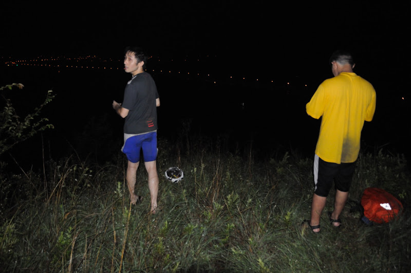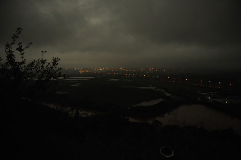 我们尽快爬到坡顶,一路免不了荆棘的划刺。天刚好黑,雨刚好停。