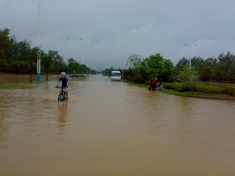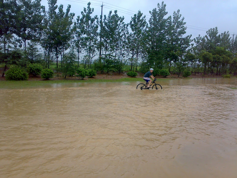 10点过,冒着雨我们再骑20分钟左右来到镇上吃酸菜鱼。可能是久不在南京吃鱼,或者是镇上的鱼要美味一些,我们竟觉得酸菜鱼口味异常的好,忍不住吃了两盆。吃饭的时候也是暴雨最猛烈的时候,我们开始yy进香河路被淹成一条水沟,等着我们回去在马路上游泳:P