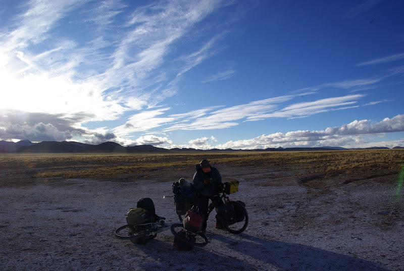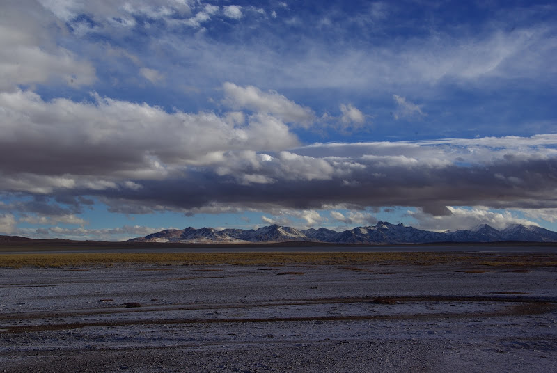 25公里,31公里都有房子,并且见到一个写满了藏文的碑。有岔路,右手38公里到康木如茶卡,旁边有同名的村子。在牧民家喝茶,吃糌粑,他家杀了羊,一地的血肉,还有一锅香喷喷的肉汤。我们顺理成章的期待着晚上投诉到一个好人家。我拿出日记来写,忽然主人端出血肠来给我们吃,立刻停工开吃。