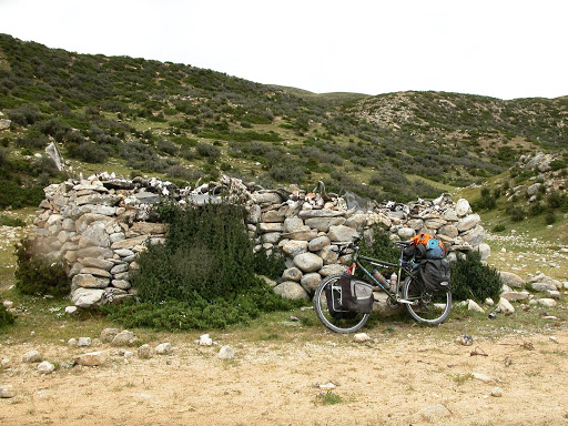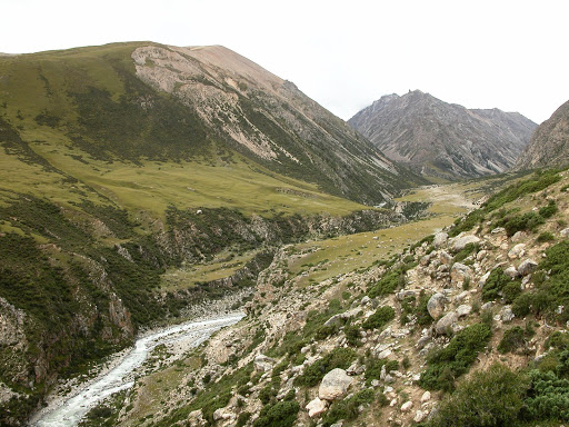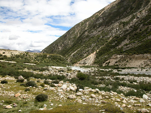 路稍好,但是完全没有公路的痕迹,偶尔能看到大轮痕迹,不知是否曾经被摩托压过。骑车依然是不能的,峡谷一直有些单调: