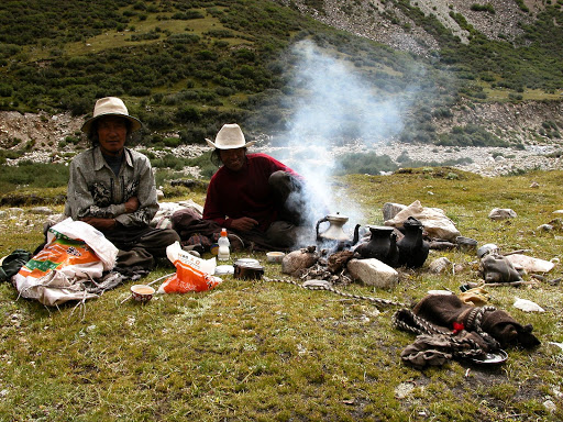 偶尔还有牧牛的藏族请我喝酥油茶: