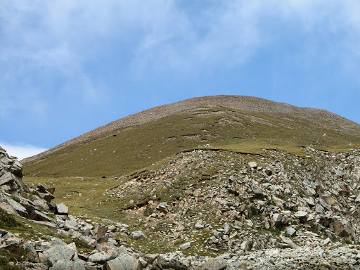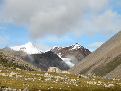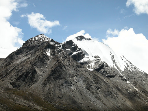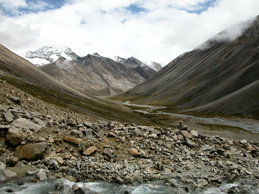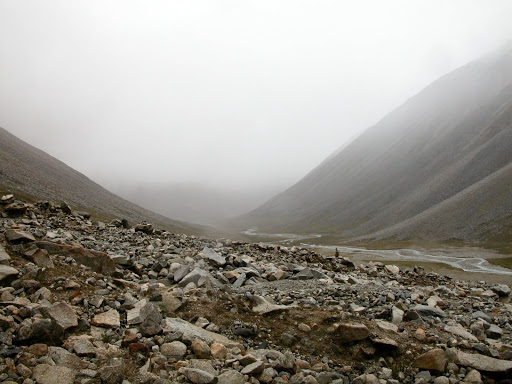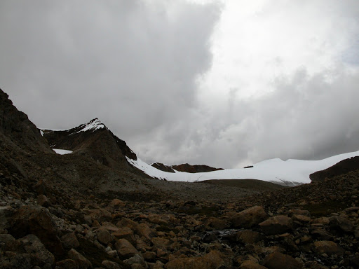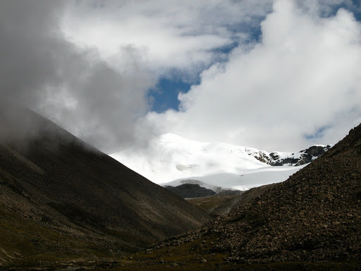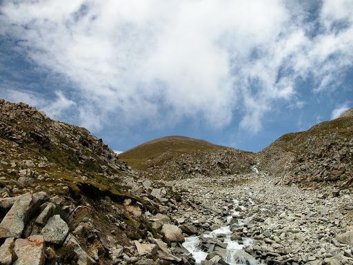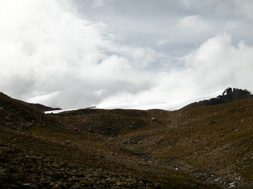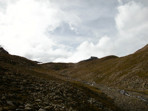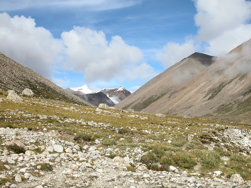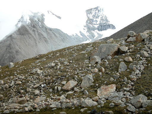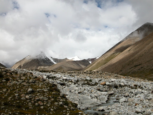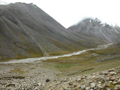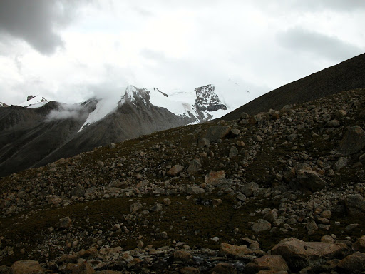 好景不长,我很快发现自己被忽悠了,而且,被忽悠大了!洛桑和桑丁把我扔在了大峡谷拐去小峡谷的路口,自己准备去采雪莲了。他们说的古仁拉山口,原来只是连山脚都不能算的地方!这种时候他们是不讲理的。在我付钱之前,他们反复说,“就到了,你自己去吧”,我情知不妙,试探他们愿意加钱请他们送我,但是仍然被拒绝。无奈,付完钱。他们开始说实话了,马送不了,“马走马死”,“都像对面那样的山”,桑丁说这两句话的时候,我把对面的山拍了下来: