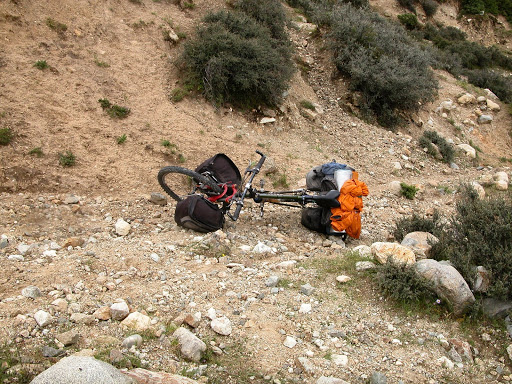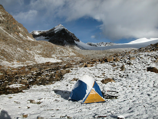 五天,从山里逃出,最高扎营5485早上雪很美。到海拔5650最后一段全冰即使能上也下不去,下山北坡,山口前一公里原路折返。有两天马背行李给了250,最后一段“马走马死”,难走的路行李拆了分三次走。脚上全烂了。除糌粑没动其他食物没了大半。带着车连行李重约60公斤每小时平均一公里推行。