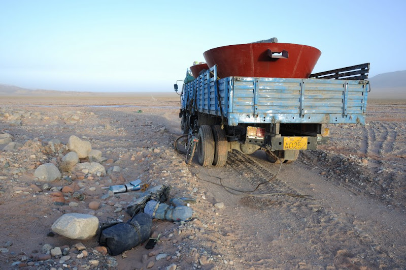 依然在阿尔金山内,已经遇到人与饭店,为了节省时间赶路,在距离玉素普阿勒克检查站前20多公里的一辆抛锚的卡车上过夜。海拔3830米。没有遮挡,晚上的小风让我担心着凉,但是睡袋的保暖性没有让我失望。