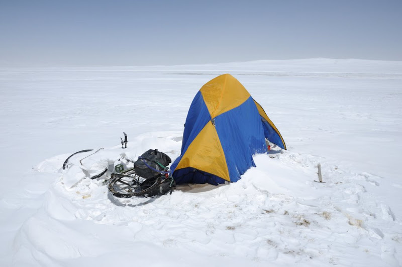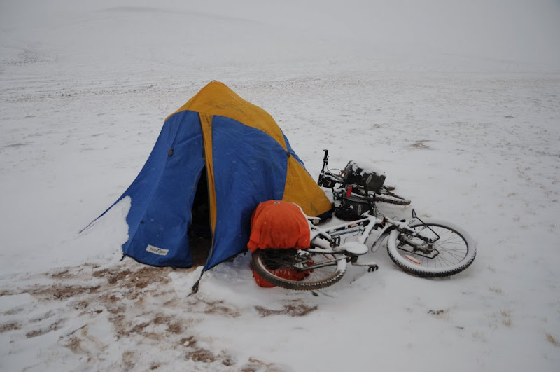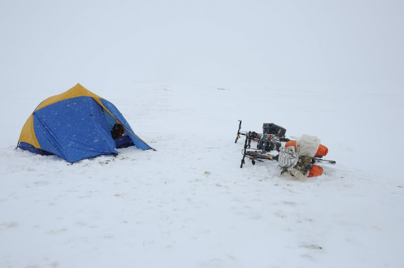 进入阿尔金山,连续30多小时的雪,中午扎营休息。海拔4770米。