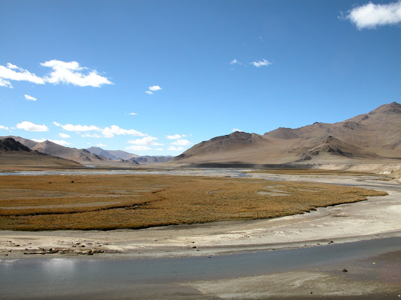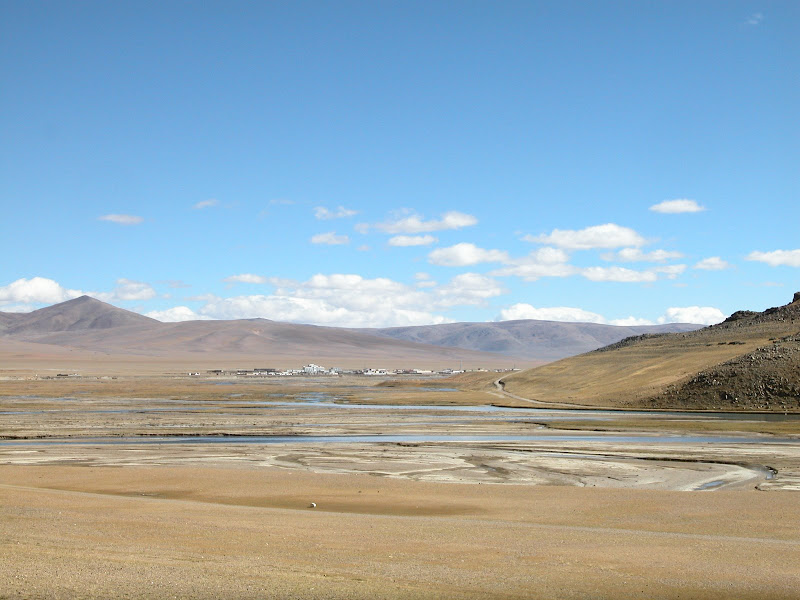 一路天气不错,沿着有些干涸的小河一路下坡骑向措勤县。