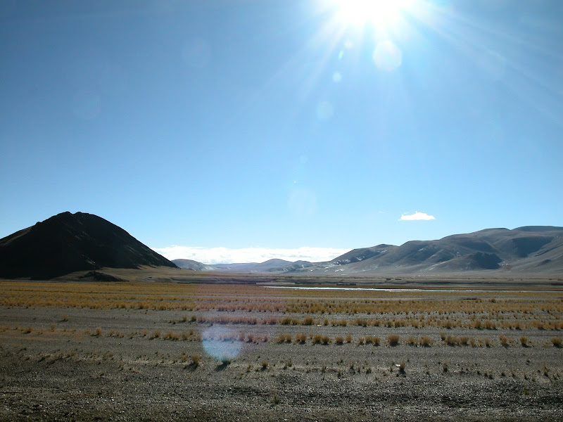 饭后前往磁石乡,骑行在一片旷野,右侧远处有块巨石,旁边有湖,我认为那就是扎日南木错,但并不能确定。