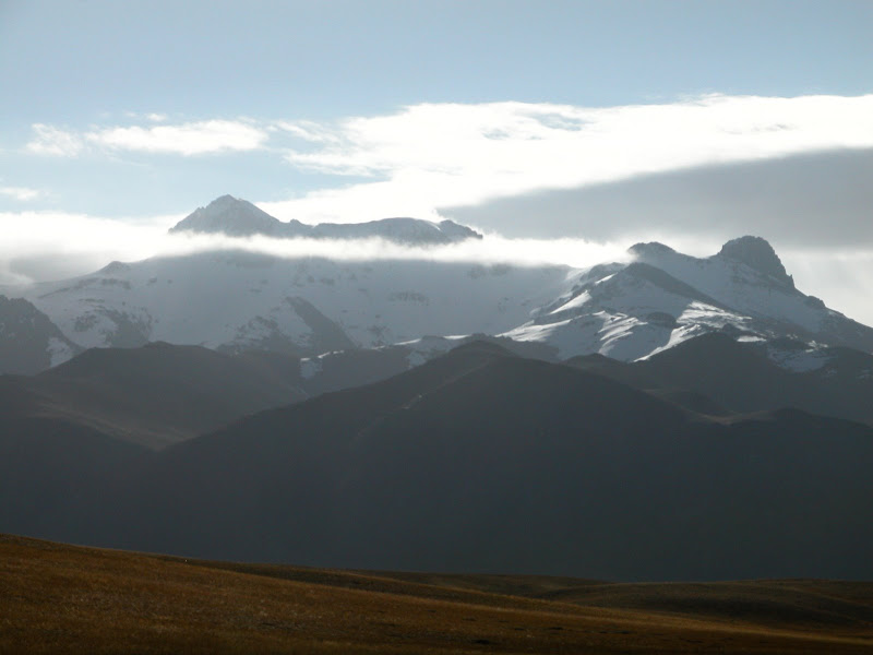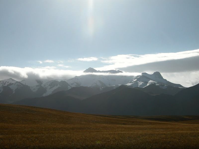 当时已经不太想走了,但是时间还早,硬着头皮翻过一个小坡,进入一个中间是小湖的盆地,路上看到帐篷,忍住没去,希望翻过这个盆地找个住处。