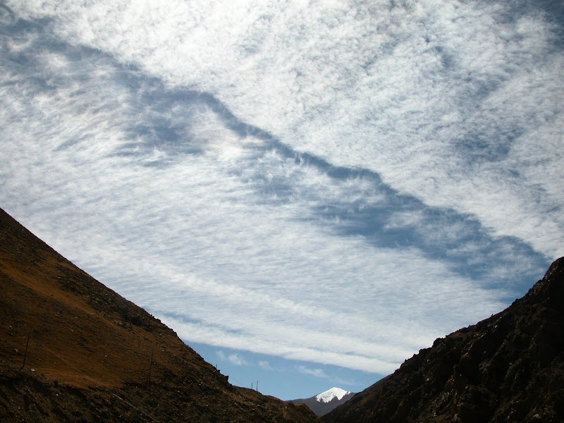 村庄多,36km见到仁堆乡,路口有食宿,乡政府在路右侧山谷里面,大路过桥去南木林县。桥上看到了好看的云层。