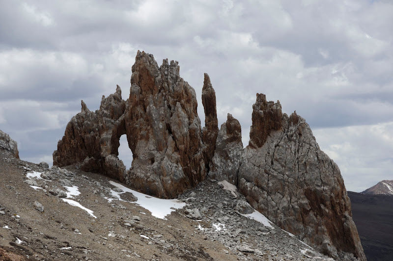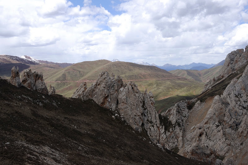 和青藏线安多到唐古拉一带很相似,“剑龙”就是侏罗纪—白垩纪的石灰岩,形成难以风化的山脊,石灰岩结束之后就是晚恐龙时代到新生代的红层,还真是恐龙们生活的时代,好点的灰岩+红层剖面帮我拍点照片撒!